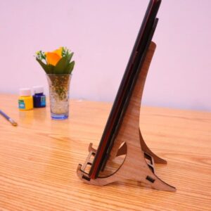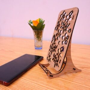 Leseno stojalo za telefon s personalizirano gravuro – eleganten in funkcionalen dodatek za vašo mizo, ki omogoča udobno uporabo telefona.